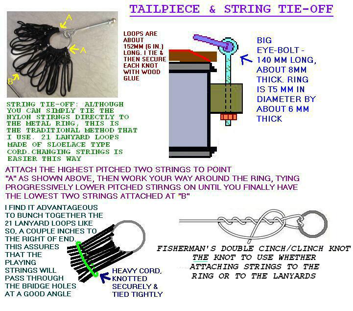 Weed-whip (aka weed-whacker) line is used for the lower pitched strings.