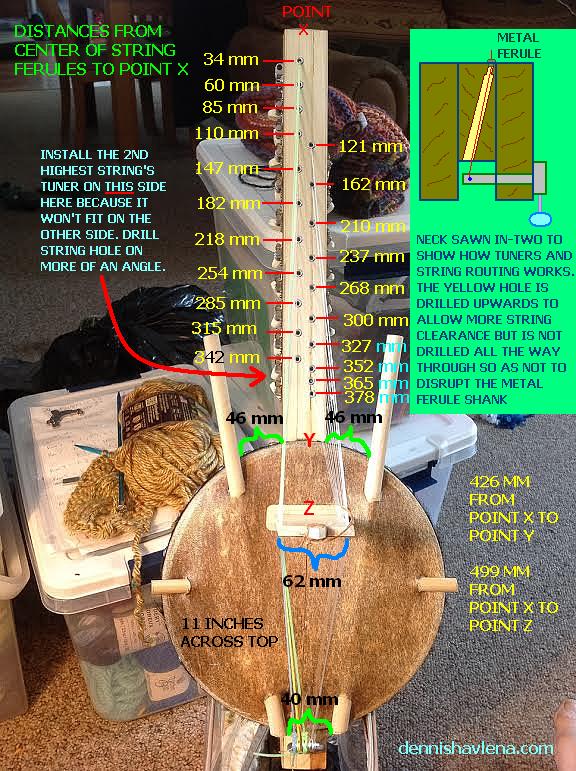 as the instrument is tuned. The amount of the neck sticking past the lower end of the