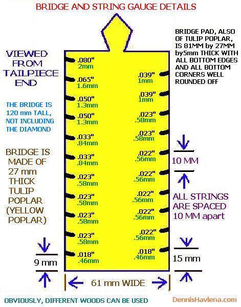 be happy to mail to you. String gauges I use are shown (IN THOUSANDTHS OF AN INCH - the