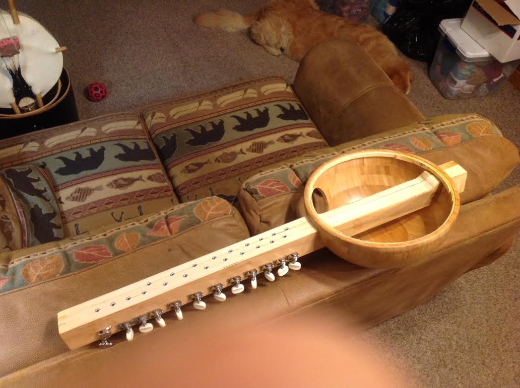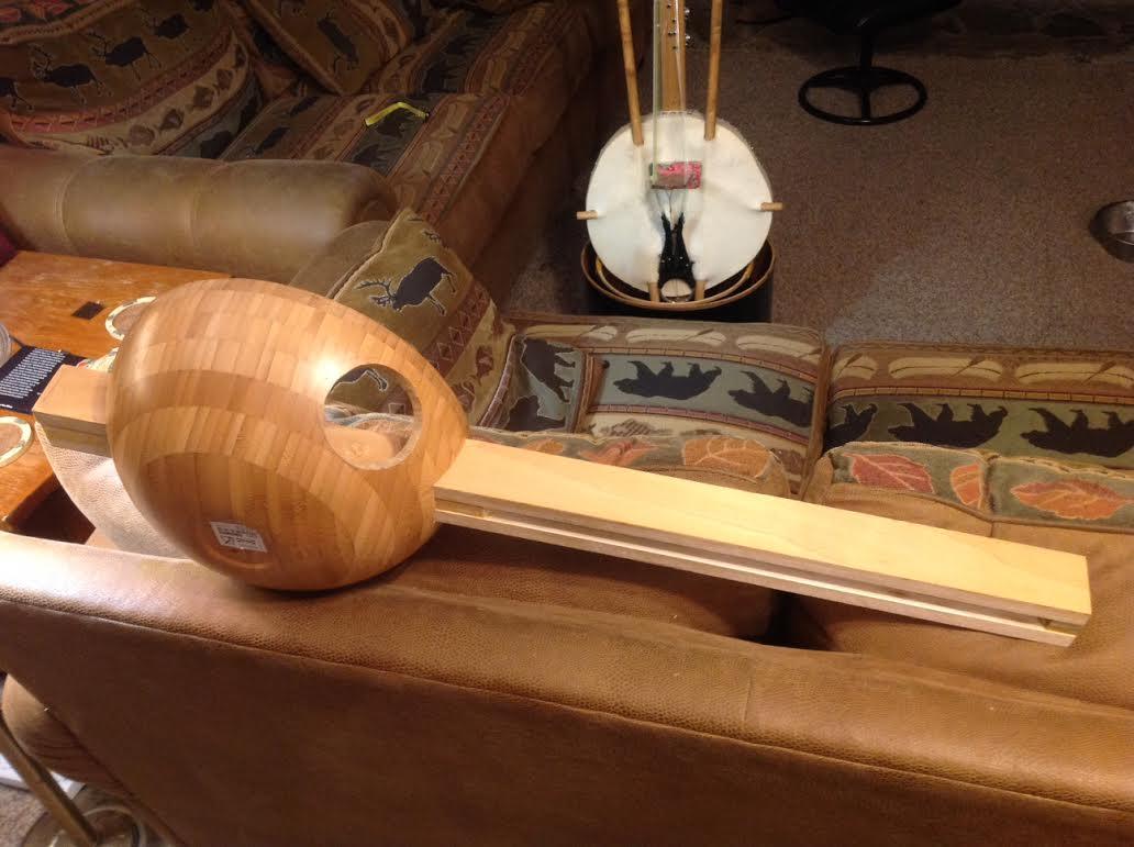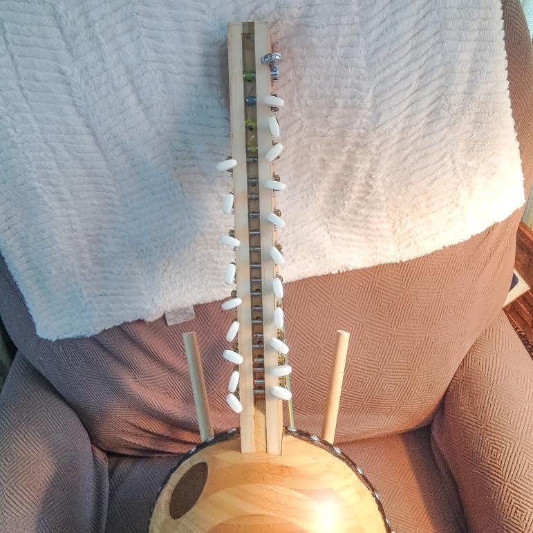 eye-bolt or screw is securely mounted. For this smaller kora I used a hefty screw-in
