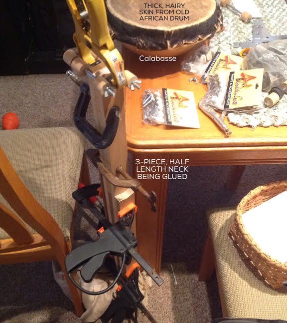 With the skin drying/tightening on the gourd, attention is turned to MAKING THE NECK. Building